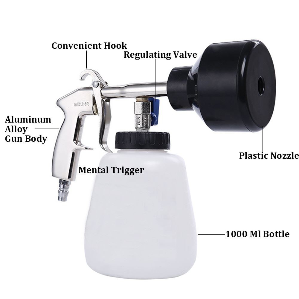 Tornador froðubyssan getur úðað ýmsum froðuhreinsivökva, notaður til að þrífa ló og leður í bílnum, yfirborði vélarinnar, yfirborði hjólbarða, yfirbyggingu bíla og mælaborði bílsins.