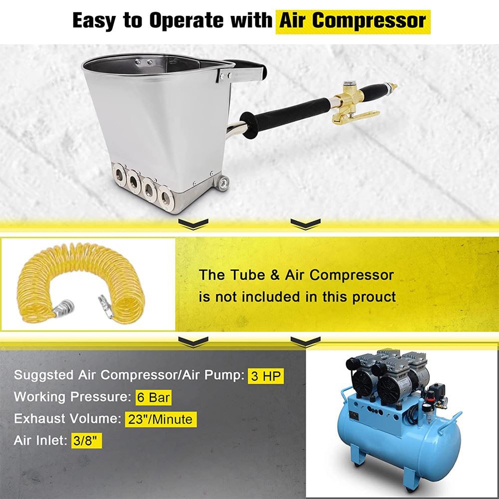 ▶ Þægileg steypuhrærabyssa fyrir hefðbundna pússingu á stucco eins og einn eða þriggja laga stucco eða GFRC.